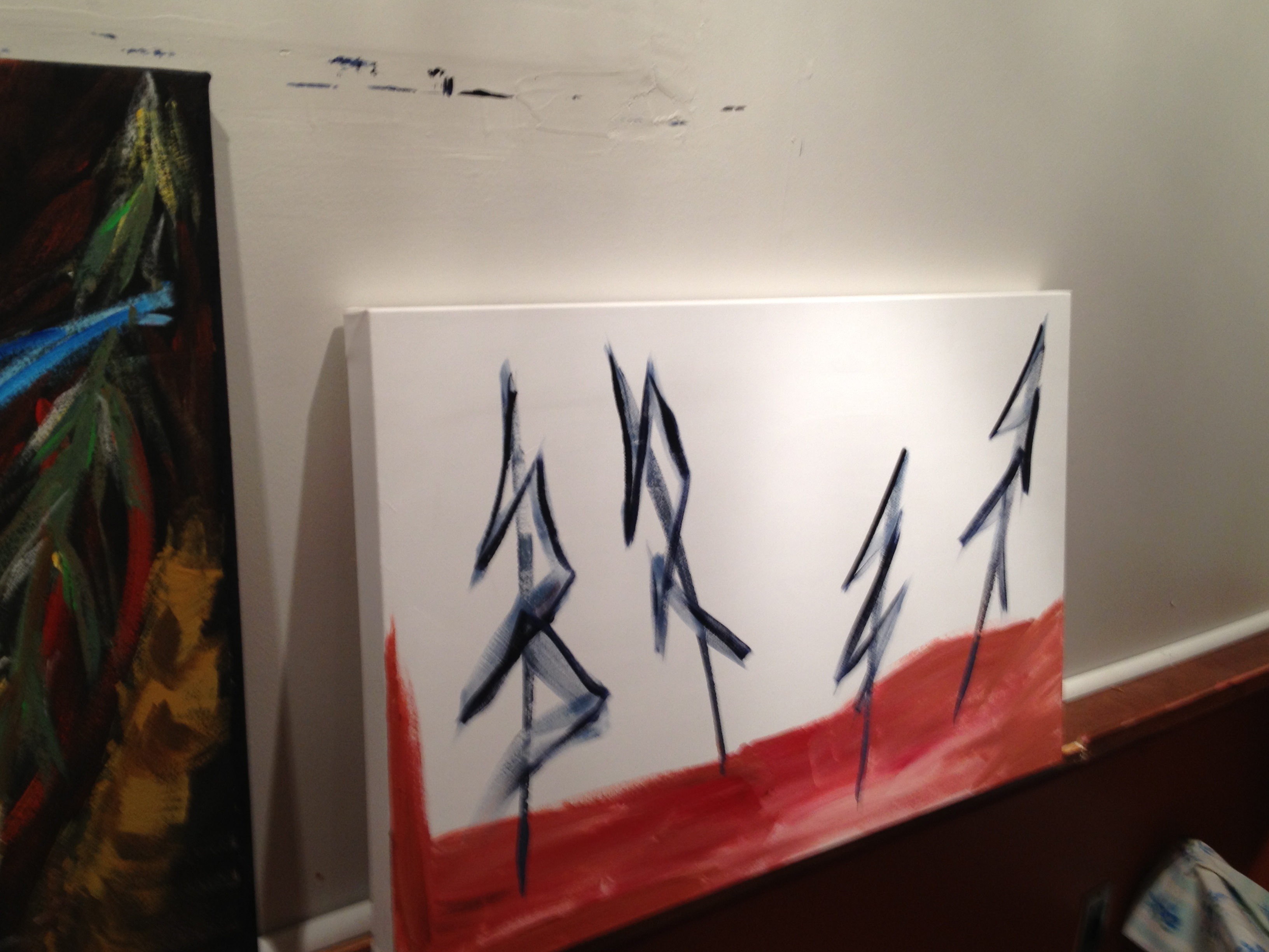 The one painting I have revamped significantly but still kept it around, it is the third picture in this post. Something in it still draws me in and I am trying to balance that unknown. I think I am settling down and into my room. Still waiting on the window which bugs me a bit as there is this unknown that will cause dust and cleaning to occur. Deep breath and onward.
