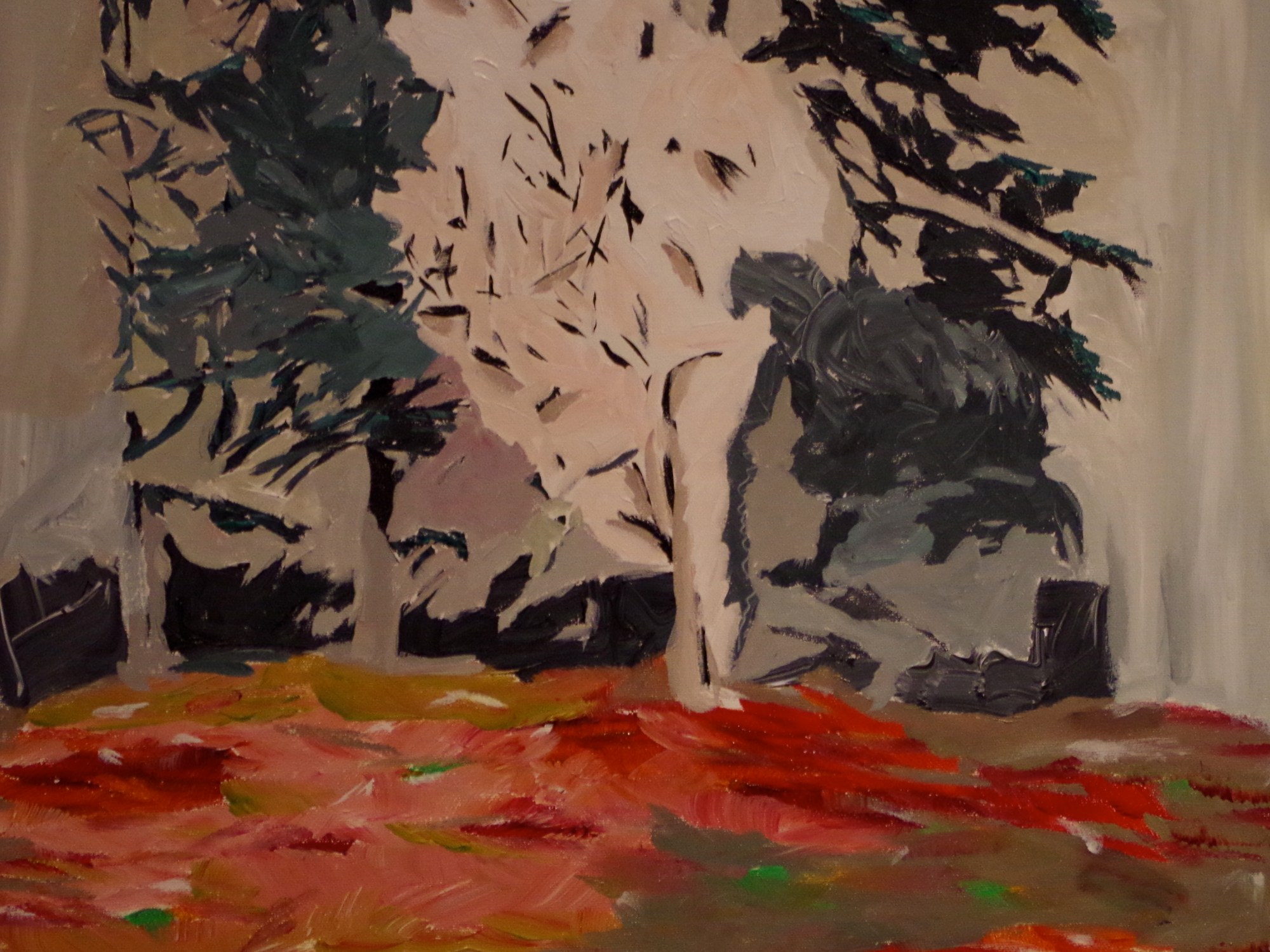 This painting is based on a photo of a Russian Olive tree in a naturalized area close to my house. I have always been drawn to this tree. It stands out at the edge of the meadow. Out flanked by the pines and spruce it holds on to centre stage. It is the late leafer and I always wonder if the winter took it tole on it. Then it bursts out it light colored leaves that last well into fall. It has an arching majestic stance, the one that is different from the rest.
