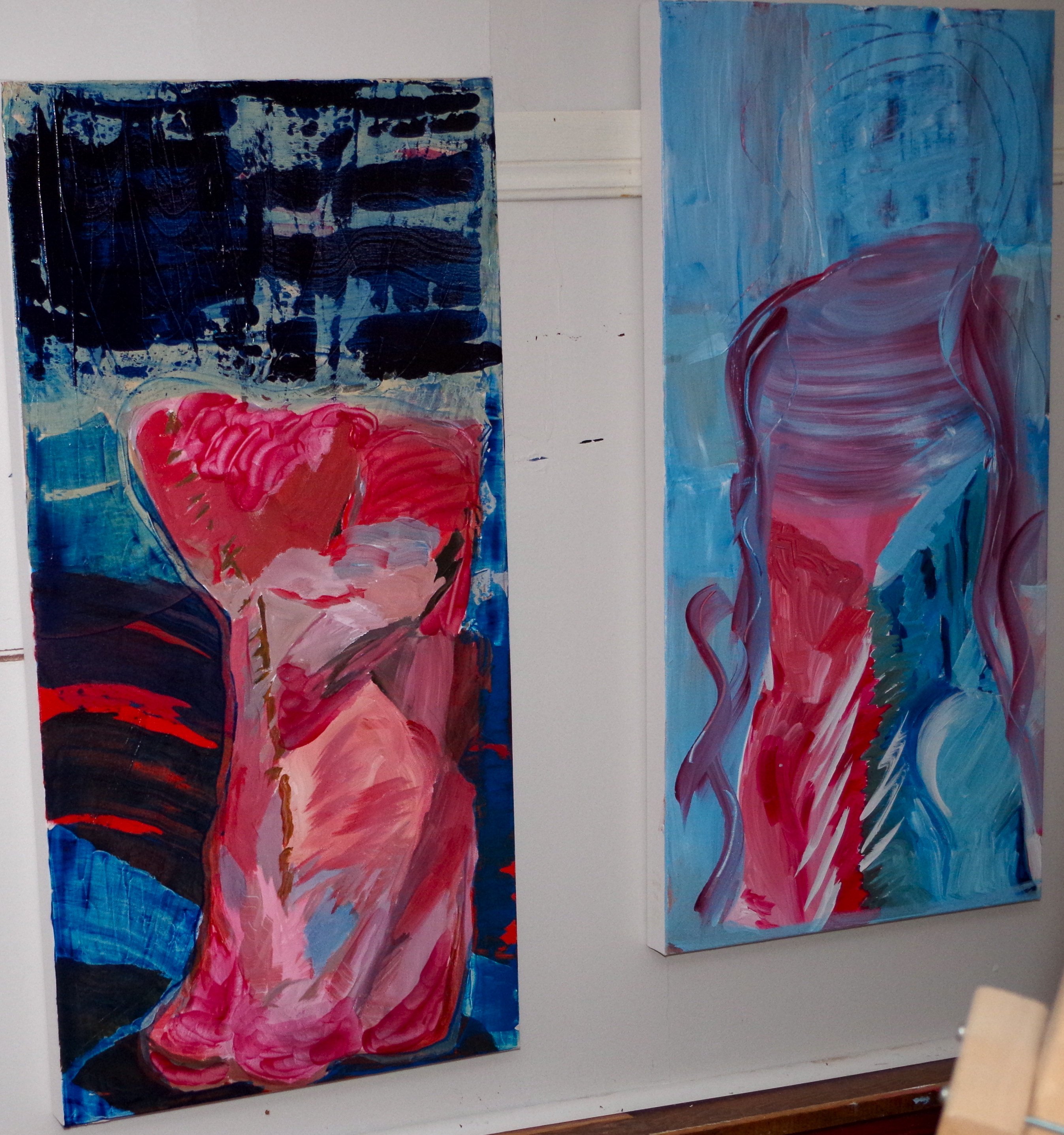 the painting are in the following order: field from ford frayed (originally, field from ford morph), blue burrs buried (from last post and some of the green still shows through), two of paintings originally from my series on clay works (the one on the left has been reworked with major blues)