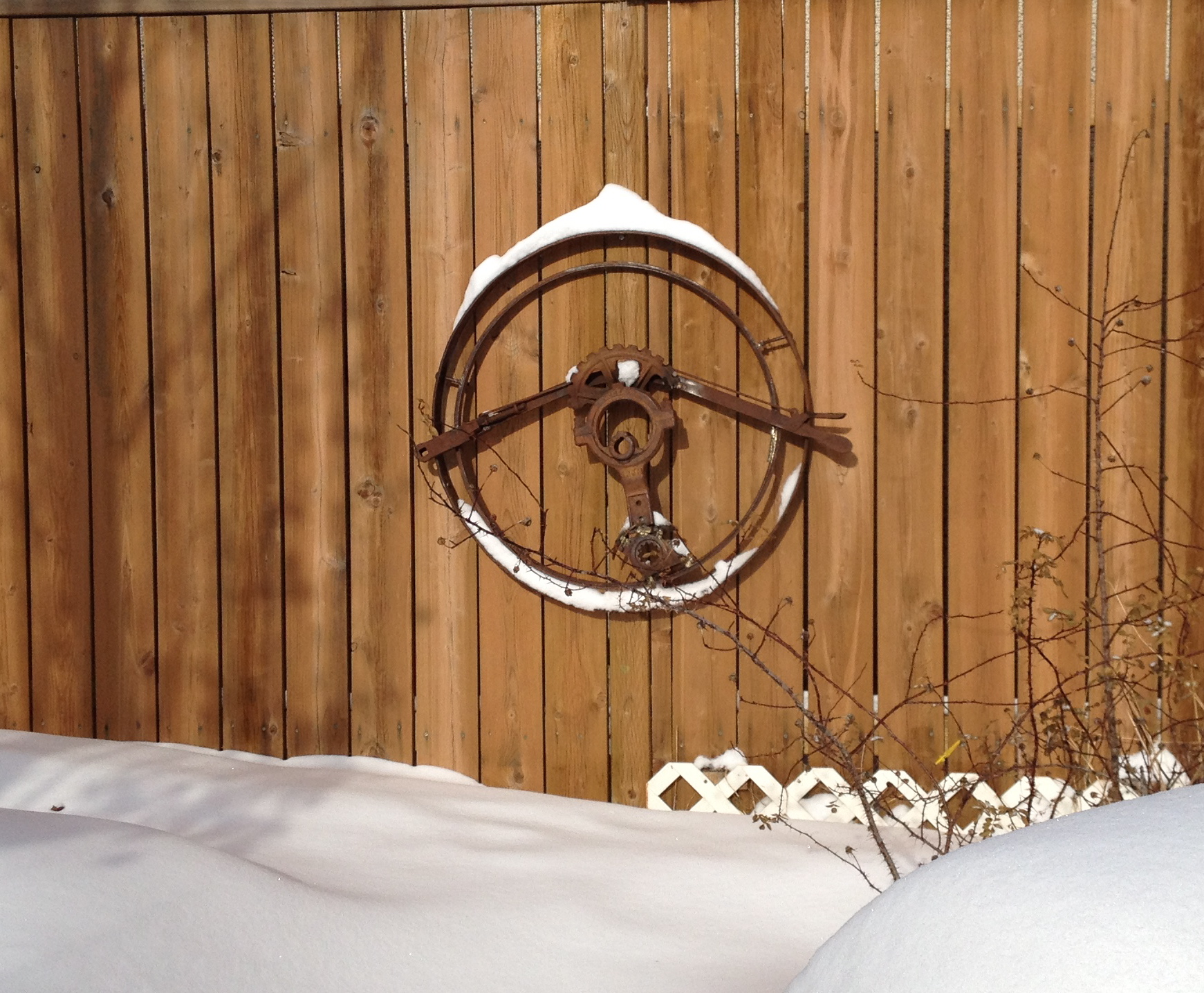 this is a completed one living in yard. snow and light all at play.