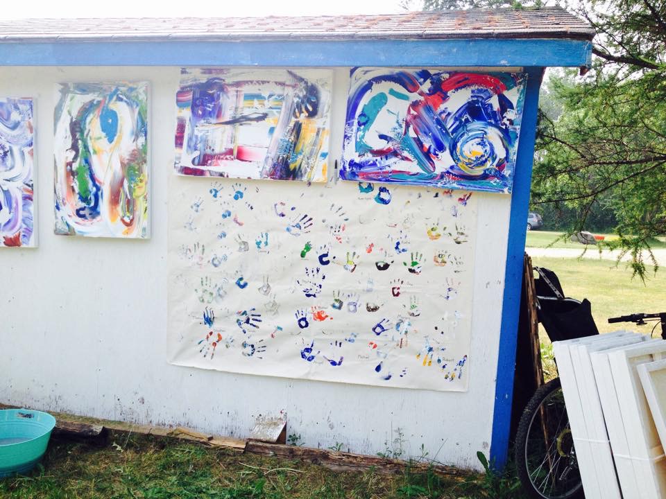 Summer has been busy, busy, busy. At the start of July we had a family reunion and I presented the opportunity for family units to create paintings with me. It was terribly fun! Each person, big or small, choose a colour that talked to them. There was strong discouragement to guide the wee ones to a colour that would match the house theme. Mom’s vision was put on hold for the moment.