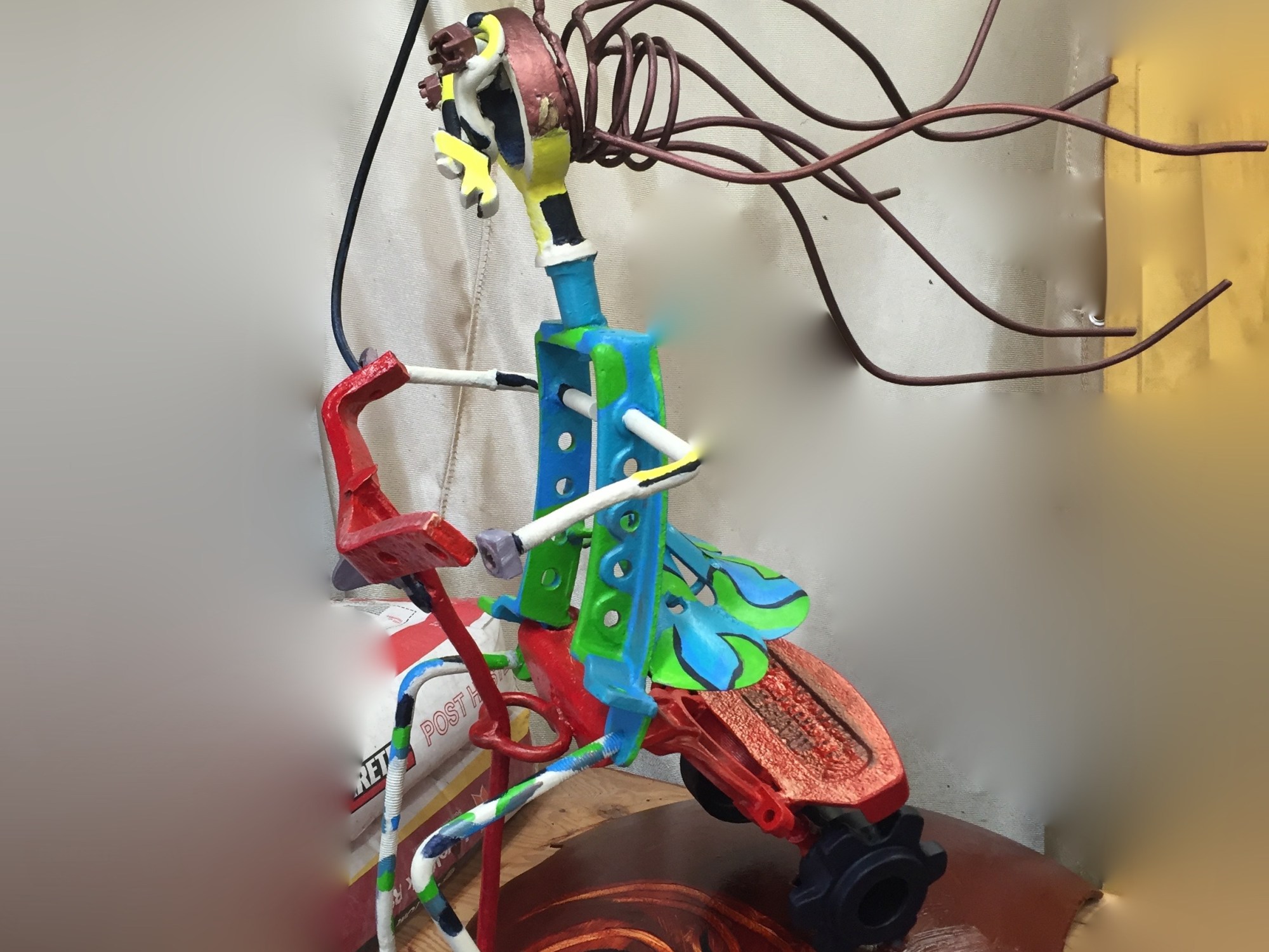 Here are pics from in the garage. Ezzi has gone through three stages now; corroseal, primer, and now my fav Golden colouring!! acrylics. I also realize that I may have caused the rust bloom failure previously by sealing her without waiting for the paint to cure, a month. Any hoo, her she is!!! I used iridescent’s in many of the mixes, looking forward to the light cast glimmers.